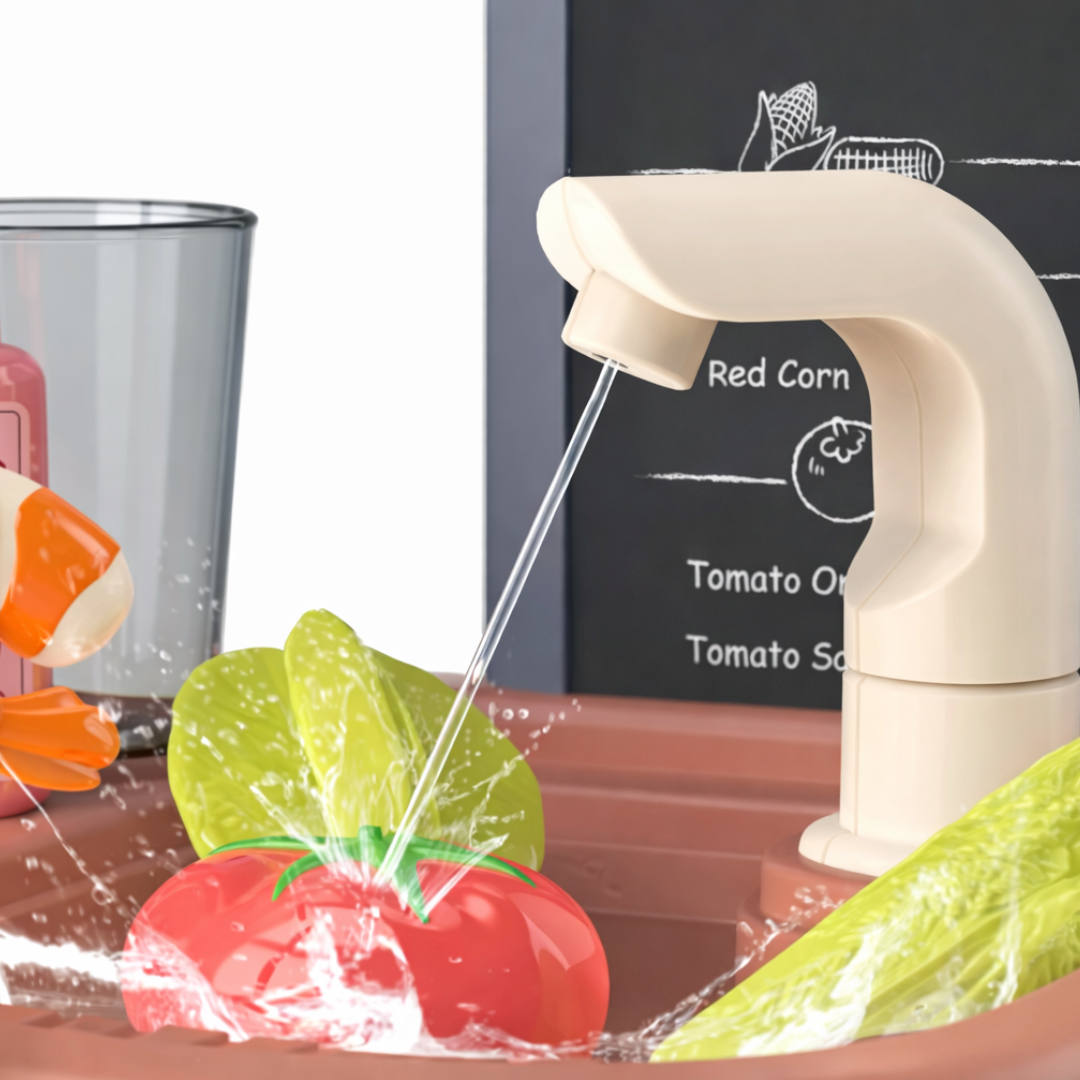 • La llave realmente bota agua, permitiendo juegos sensoriales seguros.