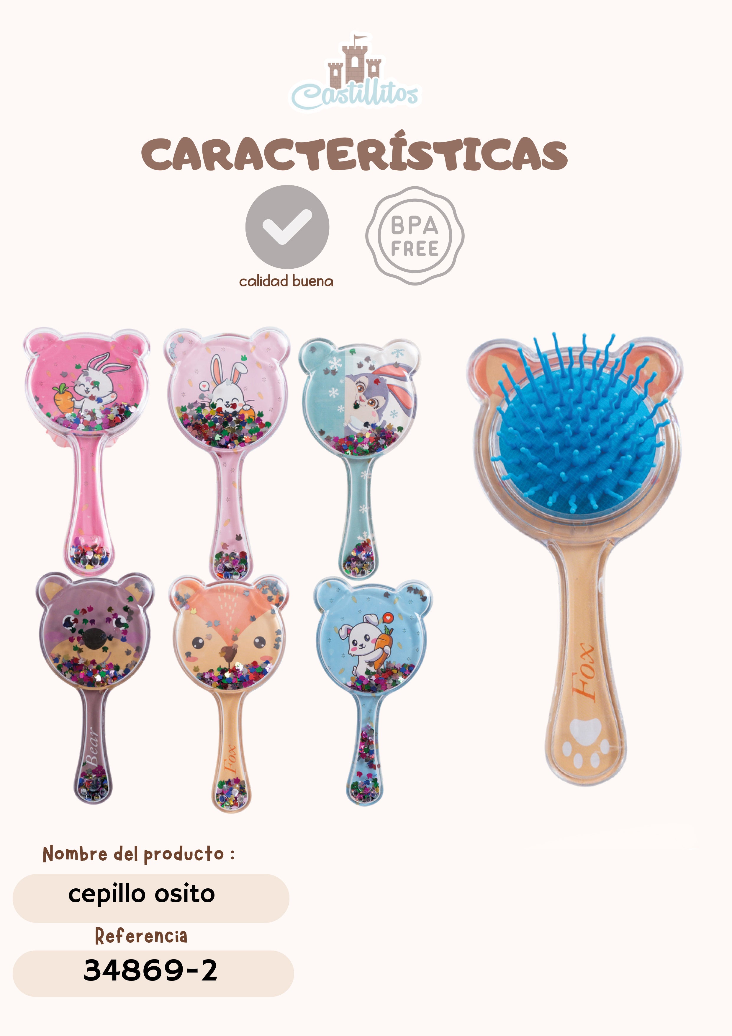 Cepillo suave con forma de osito ideal para las pequeñas princesas. Sus cerdas delicadas cuidan el cabello sin tirones. El diseño adorable hará que el momento del peinado sea divertido y agradable. ¡Haz que el cuidado del cabello sea un juego!