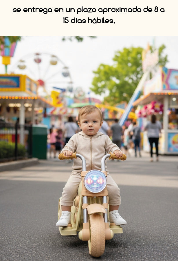 Pequeños aventureros que aman el sonido del motor y la sensación de libertad. La mini Harley es perfecta para paseos en casa o al aire libre, combinando estilo, música y movimiento en una experiencia segura. Fabricadas con materiales resistentes y seguros, son perfectas para interiores o exteriores.