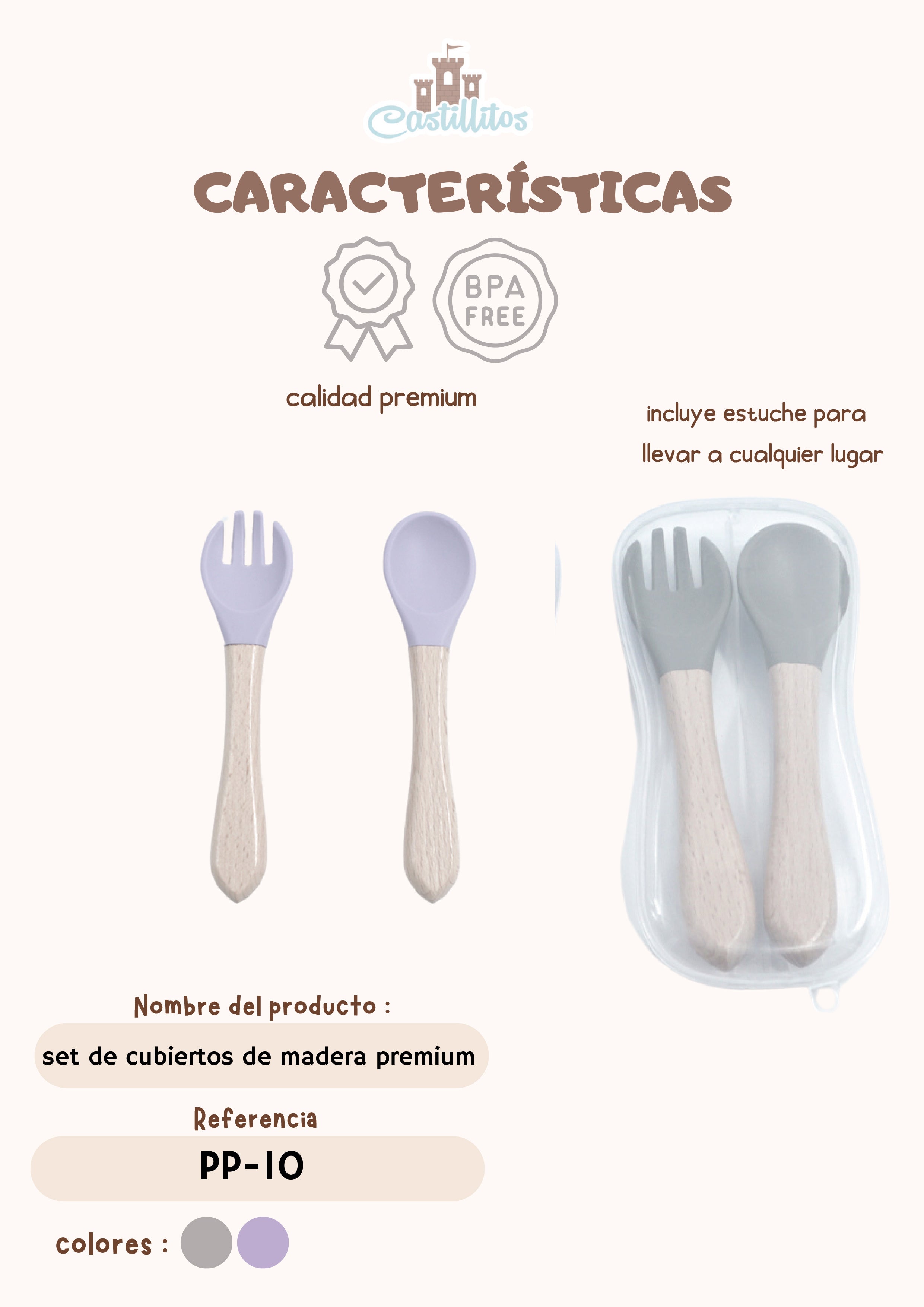 Conjunto de cubiertos de madera especialmente diseñados para bebés, seguros y fáciles de usar. Ideal para la transición a la alimentación sólida, con un diseño ergonómico y materiales naturales libres de químicos. Incluye tenedor, cuchara y estuche para transportarlos de forma higiénica. ¡Haz que la hora de comer sea divertida y segura para tu pequeño!